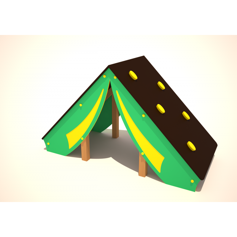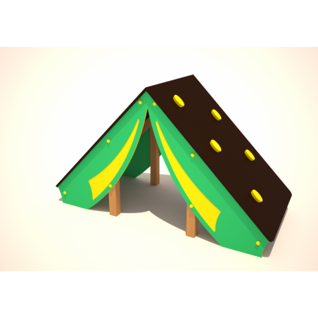 Abri maisonnette ou cabane sur laquelle. les plus courageux pourront s'amuser à grimper en utilisant les poignée de grimpe sur les 2 murs inclinés