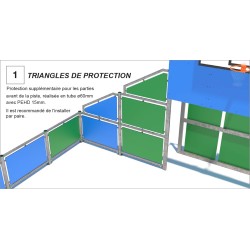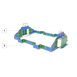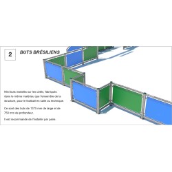 Mini buts installés sur les côtés, fabriqués dans le même matériau que l'ensemble de la structure, pour le football en salle ou technique. Ce sont des buts de 1375 mm de large et de 750 mm de profondeur. Il est recommandé de l'installer par paire.
