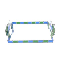Les dimensions de la piste sont calculées comme les dimensions extérieures totales. Pour ce faire, il est recommandé de réaliser des multiples de 1,375 m (modules) en ajoutant 2 m (buts) au total souhaité.