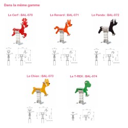 Dans cette gamme 6 équipements de jeux existent: un cerf, un renard, un chien, un panda, un T-rex et un tricératops