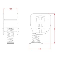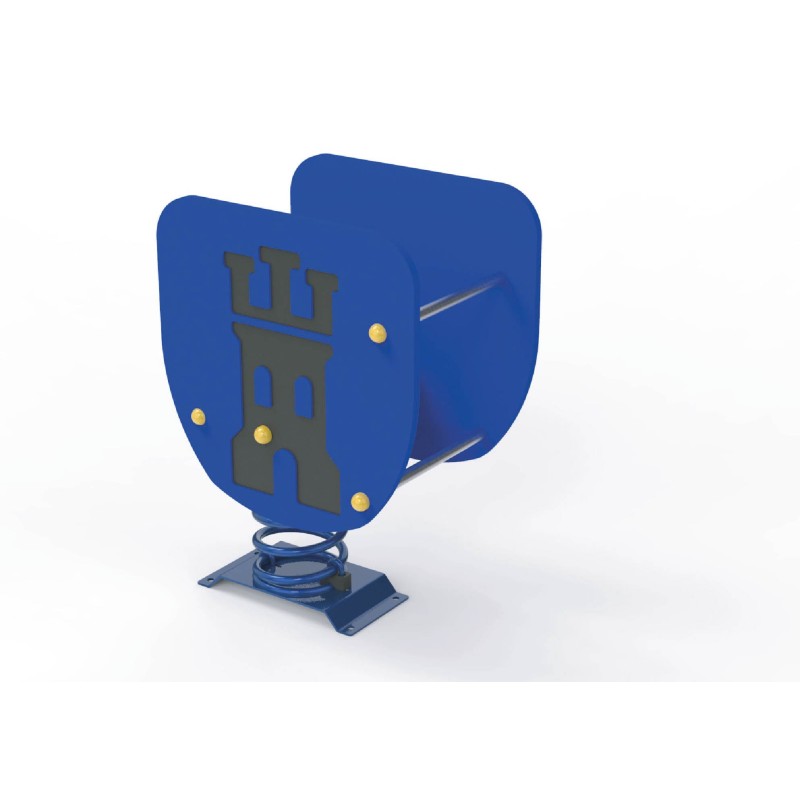 Jeu à ressort à double panneau, avec icône de château usinée, poignée en acier inoxydable et repose-pieds en forme avec une barre.