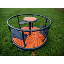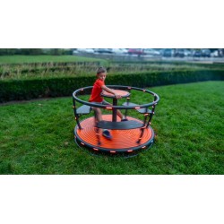 Manège innovant ! Ce manège amusant présente une combinaison impressionnante de lumière et de son, entièrement alimentée par son mouvement. Avec des lumières LED colorées sur les poignées métalliques et le bord du sol, vous verrez la magie dans les yeux des enfants. Le Carrousel, d'un diamètre de 1,33 m, est équipé de trois sièges et d'une poignée d'entraînement.