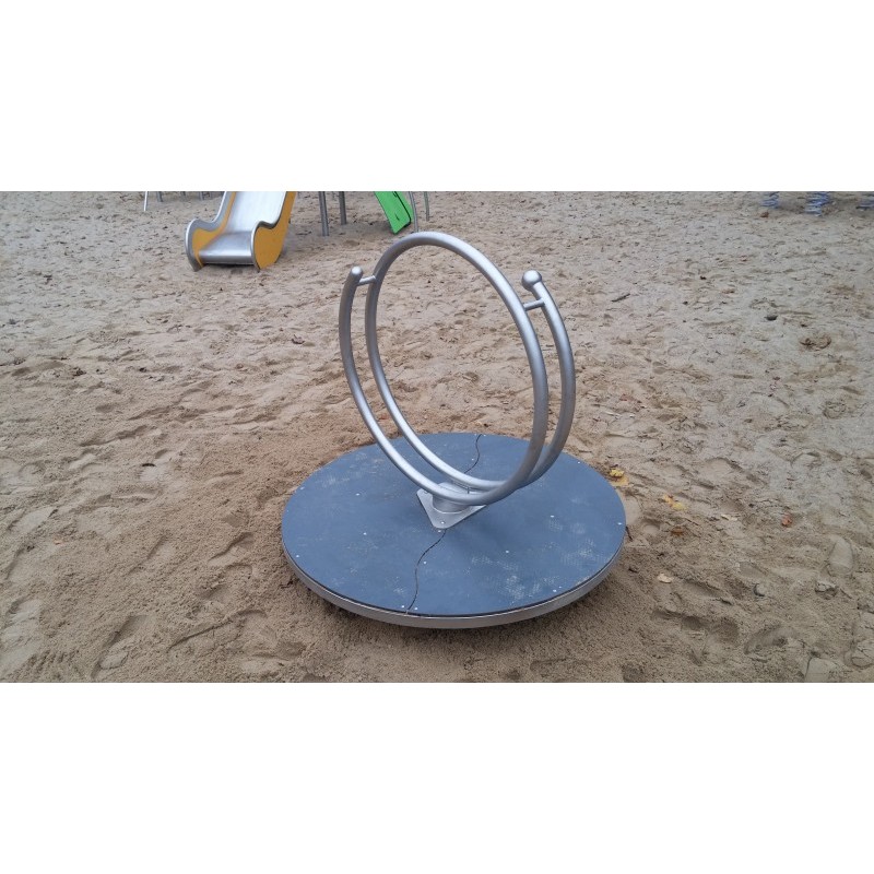 Tourniquet d'aire de jeux avec poignées et style faisant référence aux formes de l'escargot. Le carrousel tournant est en acier inoxydable.