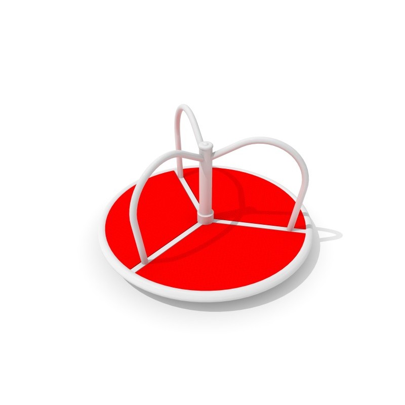 Tourniquet de terrain de jeux avec un diamètre de 1,32 m et quatre poignées connectées à un poteau installé au milieu du carrousel. Le sol est recouvert d'une plaque en PE. Grâce à cette solution, le sol du tourniquet est souple, plus sûr et antidérapant. De plus, il ne chauffe pas pendant les journées ensoleillées et ne gèle pas en hiver.
