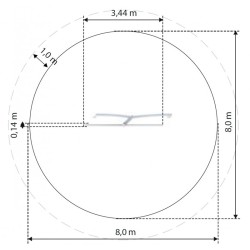 • Surface de sécurité: ø8m plus 1 m pour la zone sans obstacle