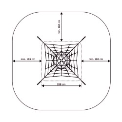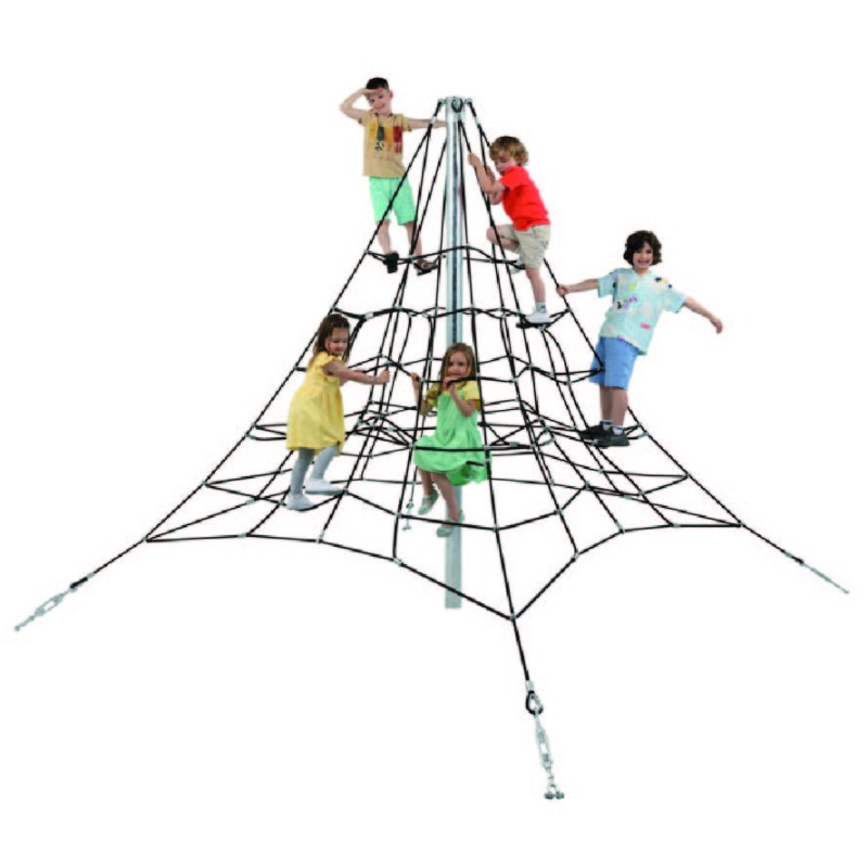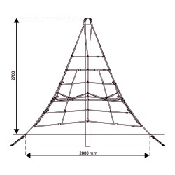 Cette pyramide de cordes de hauteur de 2,70 m est disponible en différentes couleurs. Les tendeurs et le matériel d’ancrage sont inclus, ainsi que le poteau central.
