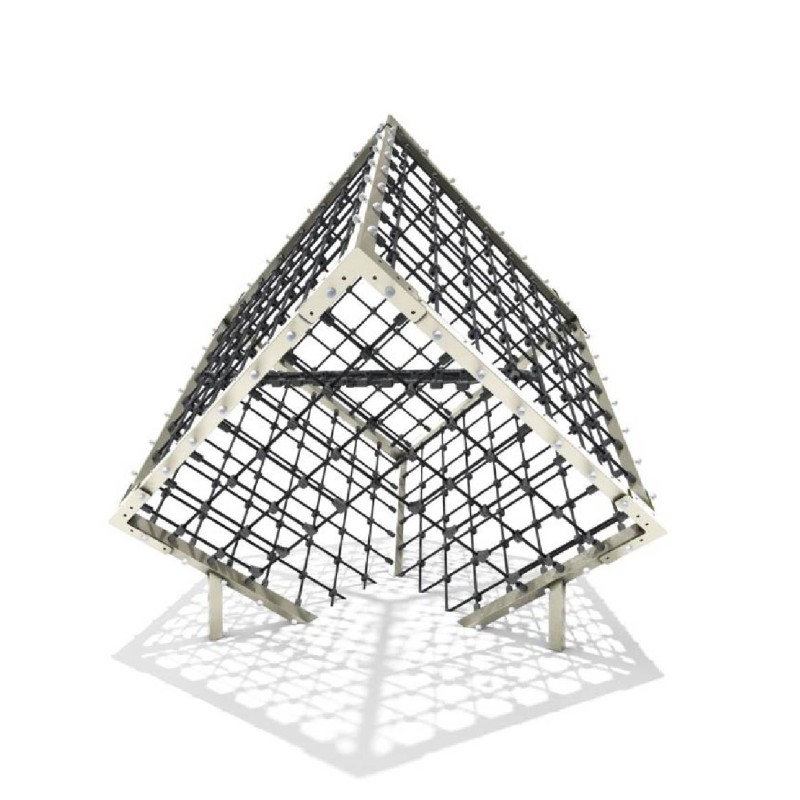 La pyramide de corde, surnommée affectueusement "toile d'araignée" par les enfants, est une structure emblématique des aires de jeux extérieures. Intemporelle et indémodable, elle traverse les générations en conservant son pouvoir d’attraction, séduisant aussi bien les plus jeunes que les plus grands aventuriers.