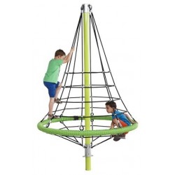 Le jeu à grimper est en cordes armées solides de 16 mm de diamètre. Les connecteurs sont en aluminium. un matériau résistant à la corrosion. Le pilier central est thermolaqué par poudrage. La structure ne tourne pas.