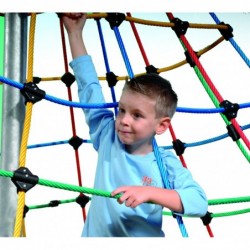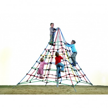 La pyramide de corde, surnommée affectueusement "toile d'araignée" par les enfants, est une structure emblématique des aires de jeux extérieures. Intemporelle et indémodable, elle traverse les générations en conservant son pouvoir d’attraction, séduisant aussi bien les plus jeunes que les plus grands aventuriers.