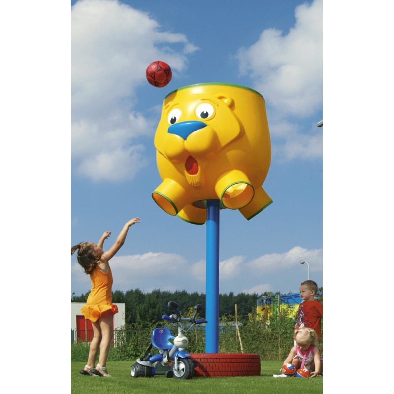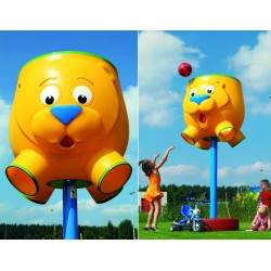 Un Attrape-ballon pour les enfants de 3 à 12 ans en forme de ours/lion. Un côté a le visage d’un ours, l’autre le visage d’un lion. Le diamètre du panier est de 90 cm (aux extrémités 110 cm). Ce jeu a une hauteur de 1 m. Le panier est fait de polyéthylène HDPE. En bas du panier il y a 4 trous par lesquels les ballons peuvent passer.