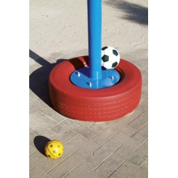 L’attrape-ballon peut être ancré dans le sol. On peut le mettre sur un sol revêtu aussi en utilisant un socle en forme d’un pneu de camion. Toutes les pièces en métal sont traitées pour qu’elles soient inoxydables et tous les écrous et boulons sont entièrement recouverts de bouchons en matière synthétique et en forme de fleur.