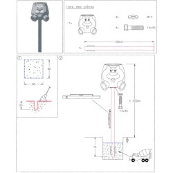 Le poteau central est à fixer fermement dans le béton lors de l’installation: fixation par scellement béton