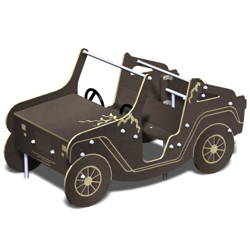 Cette JEEP revisitée comme structure de jeux ludiques extérieur pour les espaces de jeux pour enfants