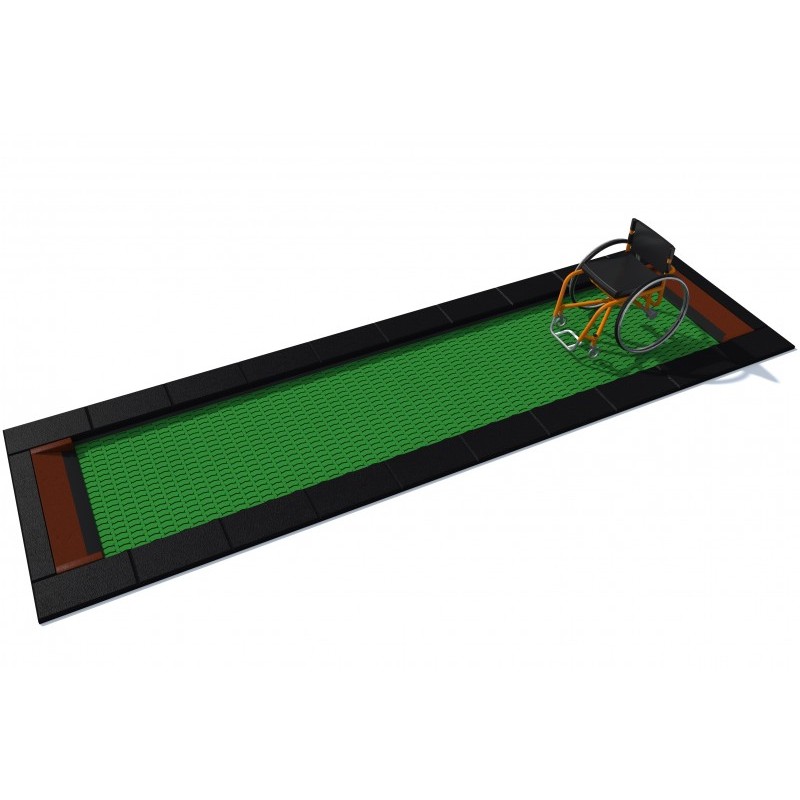Trampoline de sol avec une surface de saut de 4.5m x 1m avec rampe d'accès pour un fauteuil roulant.