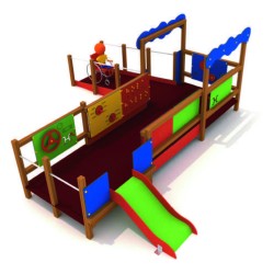L’accès adapté aux fauteuils roulants se fait par une rampe inclinée. Plusieurs panneaux ludiques sont à disposition pour permettre aux enfants d'imaginer des histoires. Les enfants valides accompagnés ou non disposent en plus d’un petit toboggan pour s’amuser.