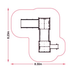 Structure avec des poteaux en bois lamellés collés et des panneaux en PEHD imputrescibles