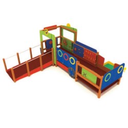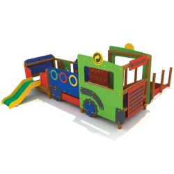 Structure adaptée aux enfants valides qui disposent d’un petit toboggan et aux enfants à mobilité réduite. L'accès au camion se fait par un pan incliné adapté aux fauteuils roulants. A l’intérieur. plusieurs panneaux ludiques permettront aux enfants de développer leur imaginaire.