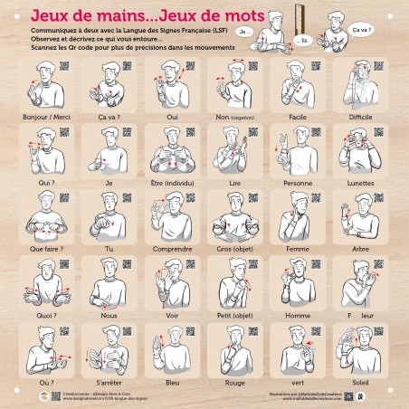 Nous vous proposons ce panneau Ludique de sensibilisation à la Langue des Signes Française (LSF) imprimé au Recto et ou au verso