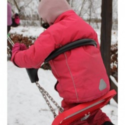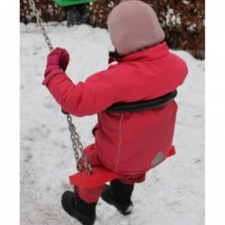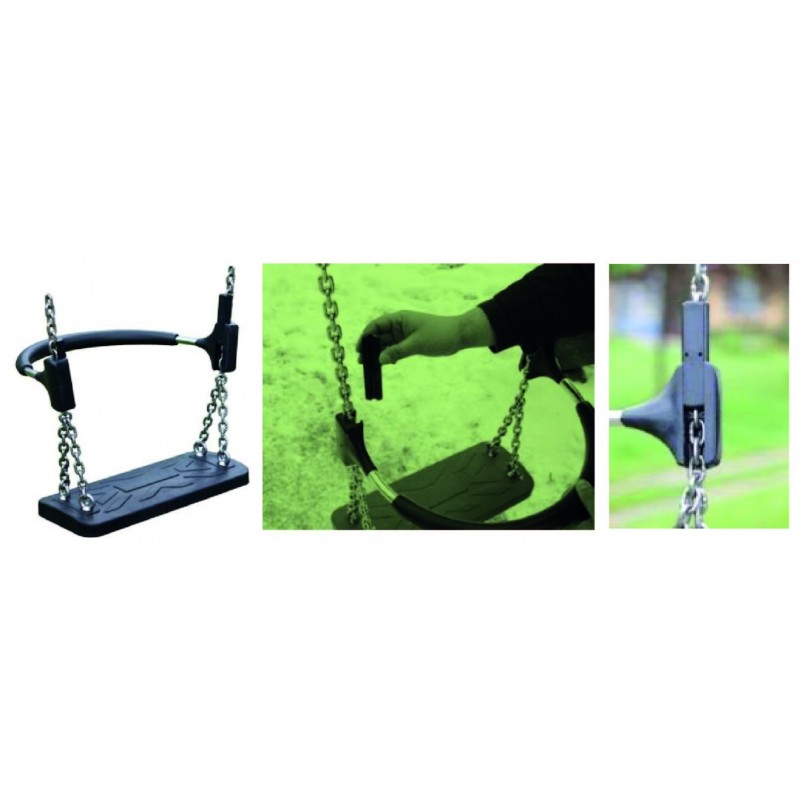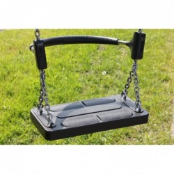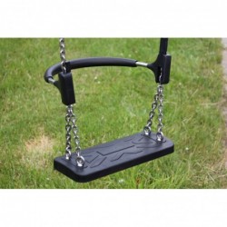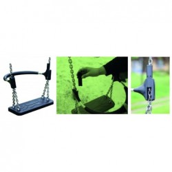 Tube en acier inox. particellement recouvert d'un caoutchouc. Compatible avec les chaines 5 et 6mm. Il peut être installer sur une balançoire existante sans enlever la chaine.