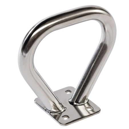 La poignée multifonctionnelle est faite en tube inox (Ø 25 mm, 2 mm d’épaisseur) soudée sur une plaque de montage de 4 mm d’épaisseur.