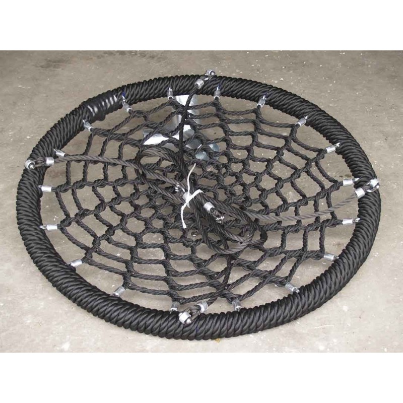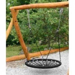 La balançoire "nid" est une structure de jeu suspendue conçue spécialement pour les enfants. Elle se distingue par son assise circulaire en forme de toile ou de filet, souvent tressée, qui ressemble à un nid d'oiseau. Ce design permet aux enfants de s’y asseoir, s’allonger ou se balancer seuls ou à plusieurs.