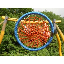 La balançoire "nid" est une structure de jeu suspendue conçue spécialement pour les enfants. Elle se distingue par son assise circulaire en forme de toile ou de filet, souvent tressée, qui ressemble à un nid d'oiseau. Ce design permet aux enfants de s’y asseoir, s’allonger ou se balancer seuls ou à plusieurs.