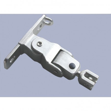 Plaque de fixation à 2 trous en acier inoxydable. avec bifurcation rotative. 2 roulement en nylon et système de fixation vis et écrou M8 pour la chaine