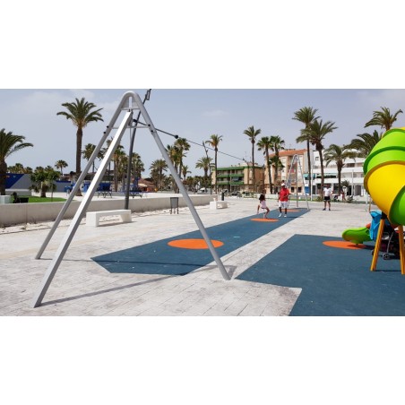 Tyrolienne avec structure en tubes acier et finition peinture époxy avec plateforme accessible avec une échelle