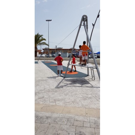 Tyrolienne avec structure en tubes acier et finition peinture époxy avec plateforme accessible avec une échelle
