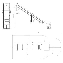 Longueur du toboggan 6,63m la largeur du toboggan 1 m. Il est entièrement fabriqué en acier inoxydable mat.