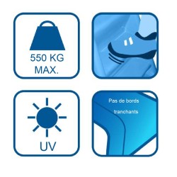 Glissière extrêmement robuste et sûre, fabriquée en une seule pièce, y compris l'échelle d'accès.