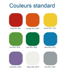 Coloris disponible : Rouge 3020, Vert foncé 6029, Vert clair 6018, Jaune 1018, Bleu 5015, Violet 4005, Orange 2009 et Gris 7040
