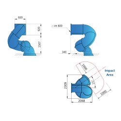 Parcours : hélicoïdal avec départ de la glisse vers la droite (comme sur l'image) ou la gauche (en symétrie)