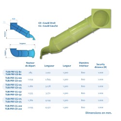 Toboggans tubulaires COUDE GAUCHE avec une hauteur de départ de 1780 mm.