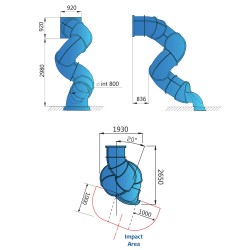 Parcours : hélicoïdal avec départ de la glisse vers la droite (comme sur l'image) ou la gauche (en symétrie)