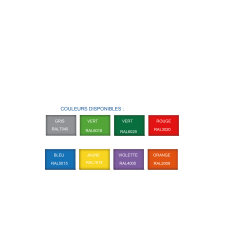 Coloris disponible : Rouge 3020, Vert foncé 6029, Vert clair 6018, Jaune 1018, Bleu 5015, Violet 4005, Orange 2009 et Gris 7040
