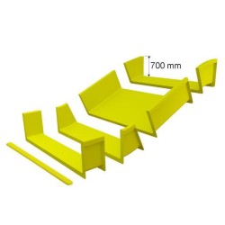 Glissières avec voie de largeur personnalisée de 1 à 5 mètres (3 et 2 mètres de série). Il est possible d'obtenir plusieurs modèles et hauteurs grâce à ses pièces modulaires.