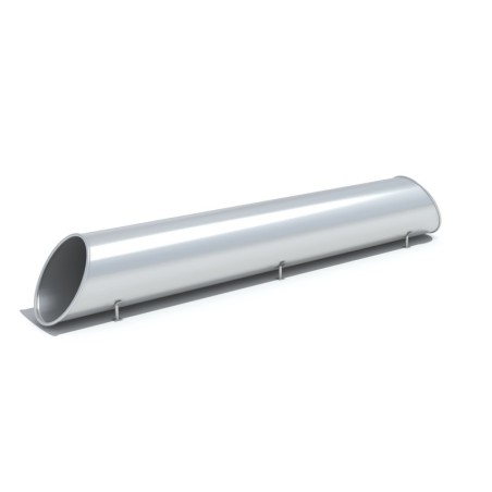 Tunnel de talus en ACIER INOXYDABLE avec entrée et sortie découpées à l'angle de 30° par rapport à l'axe du tunnel.
