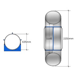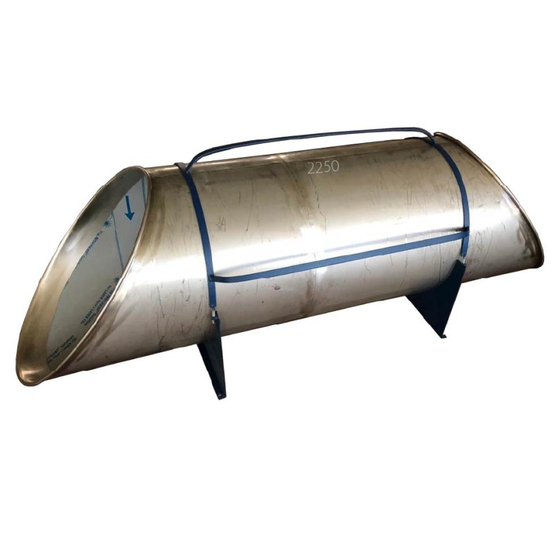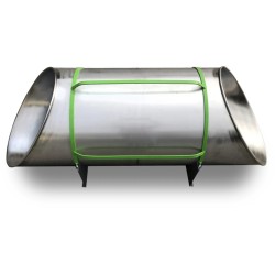 Tunnel de talus en ACIER INOXYDABLE avec entrée et sortie découpées à l'angle de 50° par rapport à l'axe du tunnel.