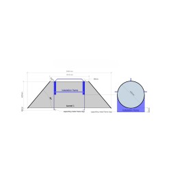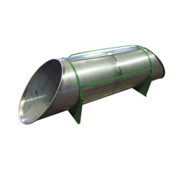 Tunnel de talus en ACIER INOXYDABLE avec entrée et sortie découpées à l'angle de 50° par rapport à l'axe du tunnel.