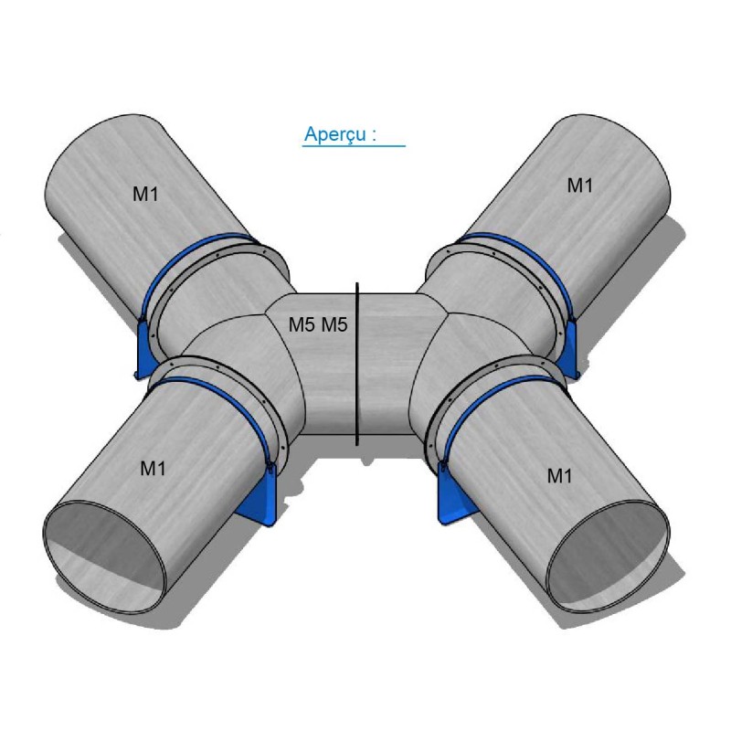 MODULE DE Tunnel de talus en ACIER INOXYDABLE avec entrée et sortie VERTICALE :4 sorties