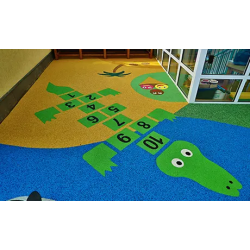 Les couleurs UV sont moins sensibles aux changements de teinte dus aux rayons UV. Les graphiques sont réalisés en granulés en EPDM et certifiés pour la sécurité sanitaire.