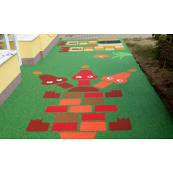 Les couleurs UV sont moins sensibles aux changements de teinte dus aux rayons UV. Les graphiques sont réalisés en granulés en EPDM et certifiés pour la sécurité sanitaire.