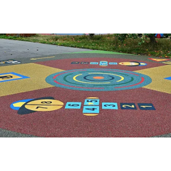 Les couleurs UV sont moins sensibles aux changements de teinte dus aux rayons UV. Les graphiques sont réalisés en granulés en EPDM et certifiés pour la sécurité sanitaire.