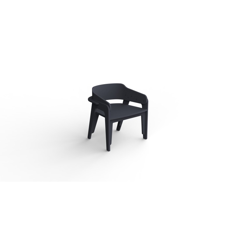Chaise avec dos en arrondis et avec accoudoirs 100% en PEHD pour les espaces privés, les jardins, les terrasses.