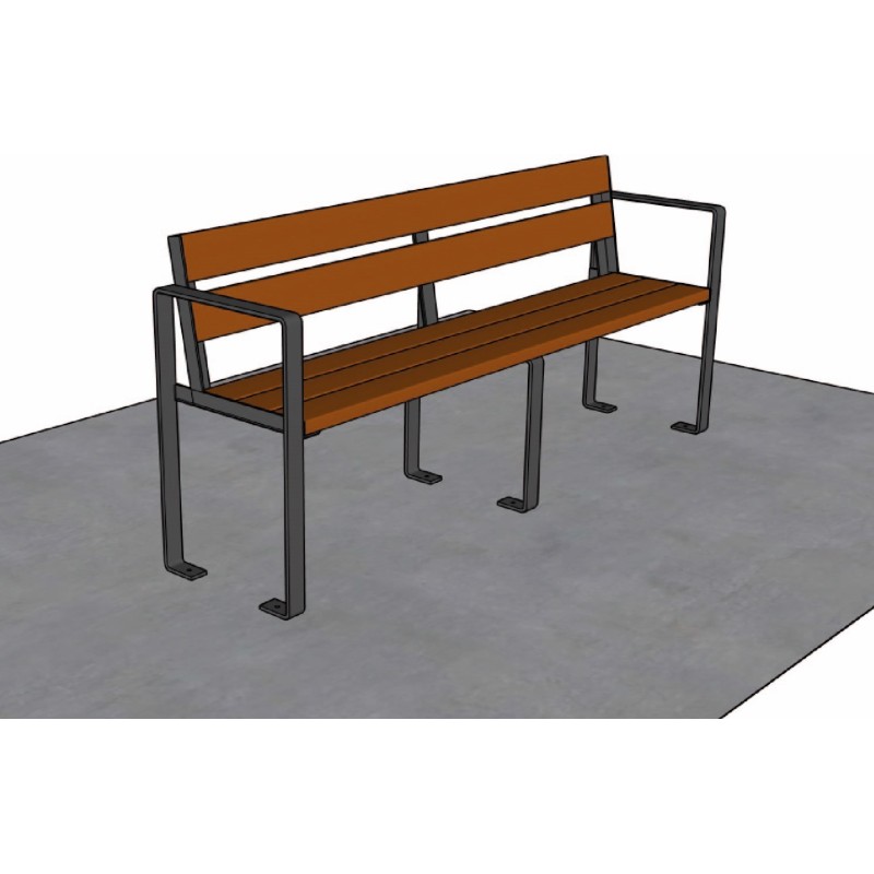 Banc avec 4 places avec des accoudoirs extérieurs.