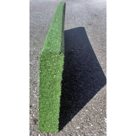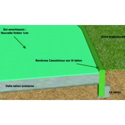 Les bordures sont fabriquées avec du granulat SBR encapsulé et coloré en surface, issu du recyclage des pneus de poids lourds. Un mélange avec de la résine polyuréthane est réalisé avant le pressage dans notre atelier.