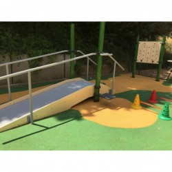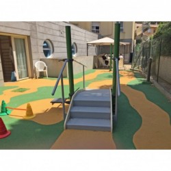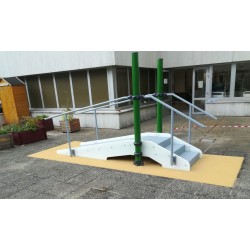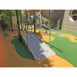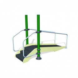 Le module Escalier & Rampe est composé de deux barres parallèles inclinées faisant office de main courante, et de trois marches. Le SPK18 simule des montées et descentes, et permet ainsi à l'usager de s'entraîner pour certains déplacements du quotidien.