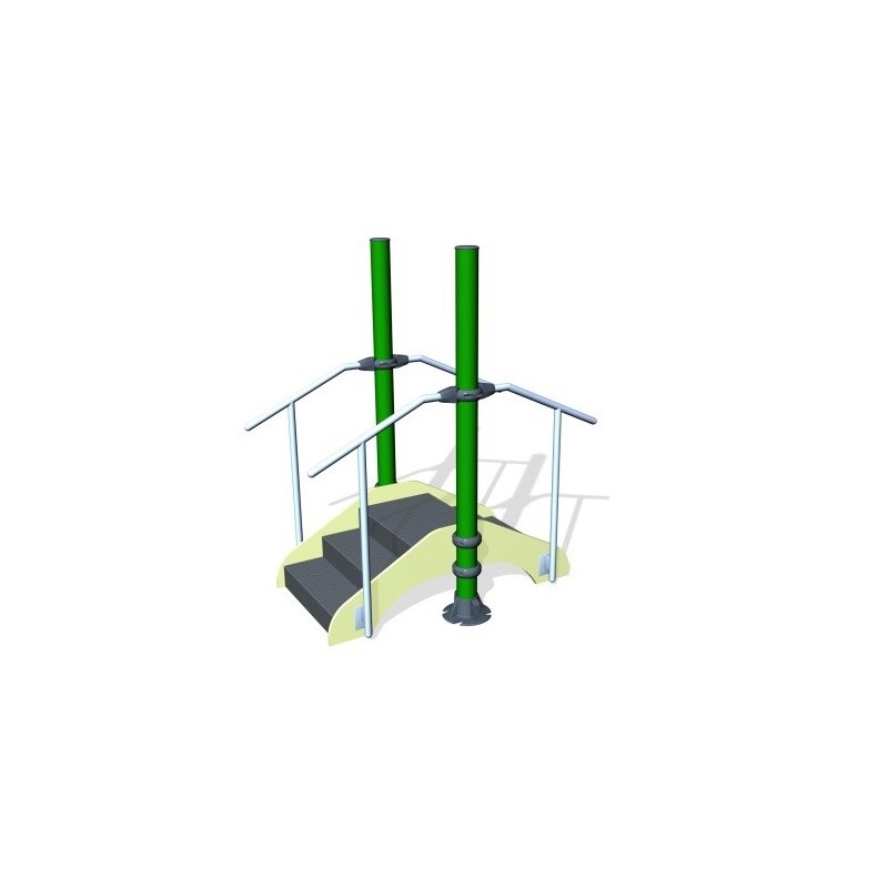 Le module Escalier & Escalier est composé de deux barres parallèles inclinées faisant office de main courante, et de deux séries de marches. Le SPK28 simule des escaliers en montée et descente, et permet ainsi à l'usager de s'entraîner à des déplacements du quotidien.