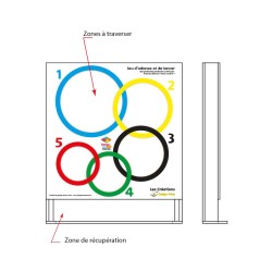 Ce module se fixe sur les poteaux inox. Il comprend un panneau avec 5 orifices de tailles et de couleurs différentes, ainsi que 5 balles ou sachets à grains de lancer.